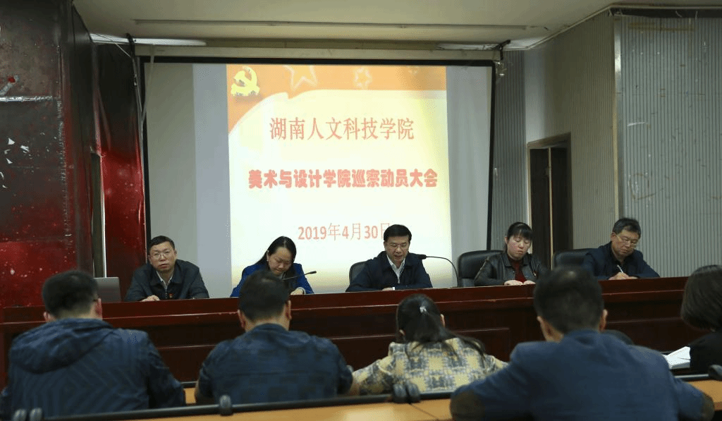 4月30日下午,学校第一巡察组正式进驻美术与设计学院,在216会议室、多媒体报告厅分别召开了与美设院领导班子沟通见面会及全院职工动员大会。