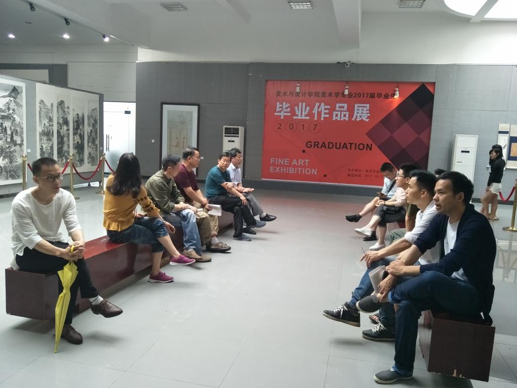 2017年6月1日上午十点,美术与设计学院美术学专业2017届毕业生作品展在逸夫楼展厅展出。此次毕业展是2017届美术学同学们几年学习的成果。美术与设计学院谢光绎书记、邹少灵院长等参观毕业作品展,并同美术学专业全体老师进行了座谈,听取了专业教师对实践教学和毕业作品等工作的汇报,给予好评。同时希望全体教师积极思考,进一步融合专业优势,打造自己的特色。