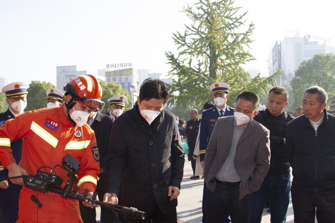 11月9日上午,娄底市2021年度“119”消防宣传月活动启动暨“娄底消防”文创品牌发布仪式在娄星区娄星广场隆重举行,校党委书记刘和云与市人民政府副秘书长罗光才等一道出席了活动并讲话。