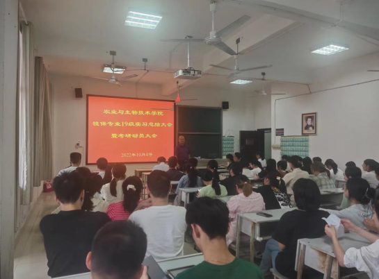 10月4日下午,农生院植物保护专业在逸音楼505(2)厅召开“19级毕业实习总结大会暨考研动员会”。植物保护学科带头人金晨钟教授,院考研班主任赵佑柏副教授、以及所有实习带队教师和部分教研室教师参加了此次大会。会议由张尚志主持。