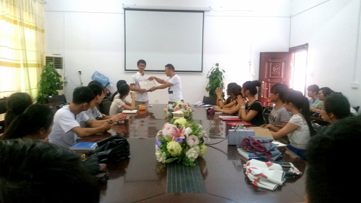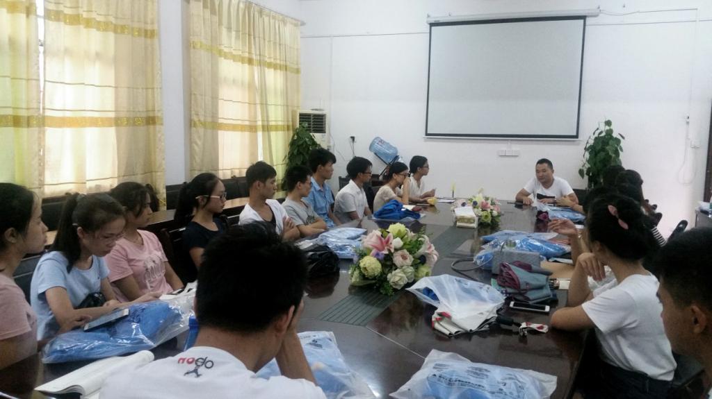 在班会上,陈致印老师正式宣布了班委的名单且颁发聘书,并给班上同学发放了印有铭基食品有限公司标识的班服,要求在班级活动中要统一着装。同时,他详细阐述了2013级10名学生在铭基实习的所见所感,着重分析了铭基班同学寒假实习时将可能面临的机遇与挑战,需要同学们在心态上与学习上做好充足准备,并重点强调在以后的学习中要不断自省,充分了解自己的优势和劣势,找准自己未来方向,提升综合素质,特别是在英语口语、演讲口才、沟通技巧等方面下功夫,以提升自身的核心竞争力。