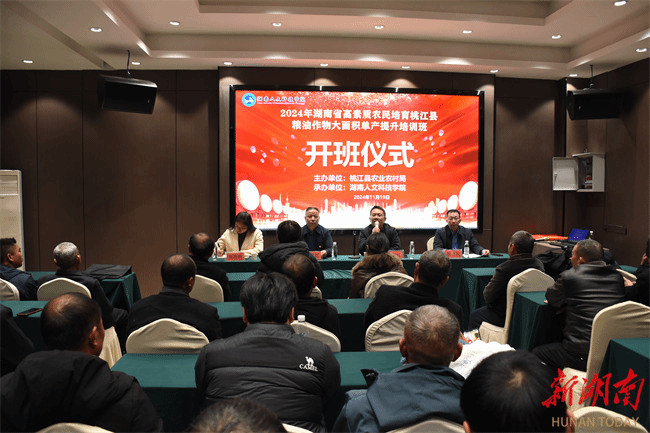 11月19日,由beat365英国官网承办的2024年湖南省高素质农民培育项目——桃江县粮油作物大面积单产提升培训班开班。50余名来自益阳市桃江县从事粮油生产、经营、服务的专业大户,家庭农场主、农民合作社带头人、企业负责人或技术骨干参加培训。