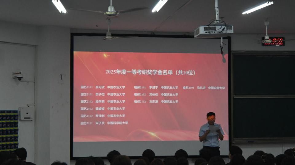 园艺、植保、农学、食品专业的四位优秀毕业生代表依次上台,分享了他们的备考策略和心路历程,为2026届学子传递宝贵的经验与坚定的信心。