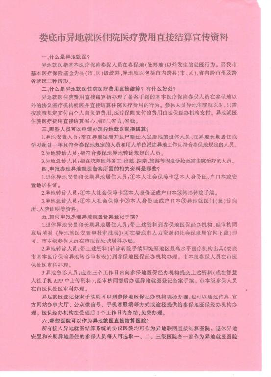 娄底市异地就医住院医疗费用直接结算宣传资料