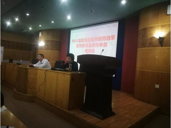培训会上,毛攀云传达了湖南省2017年度高校教师系列职称评审改革工作会议精神,并结合实际,对beat3652017年教师系列职称评审工作做了具体部署和安排。陈刚就申报职称评审材料的组织撰写、表格填写及佐证材料准备等内容做了详细分析和说明。