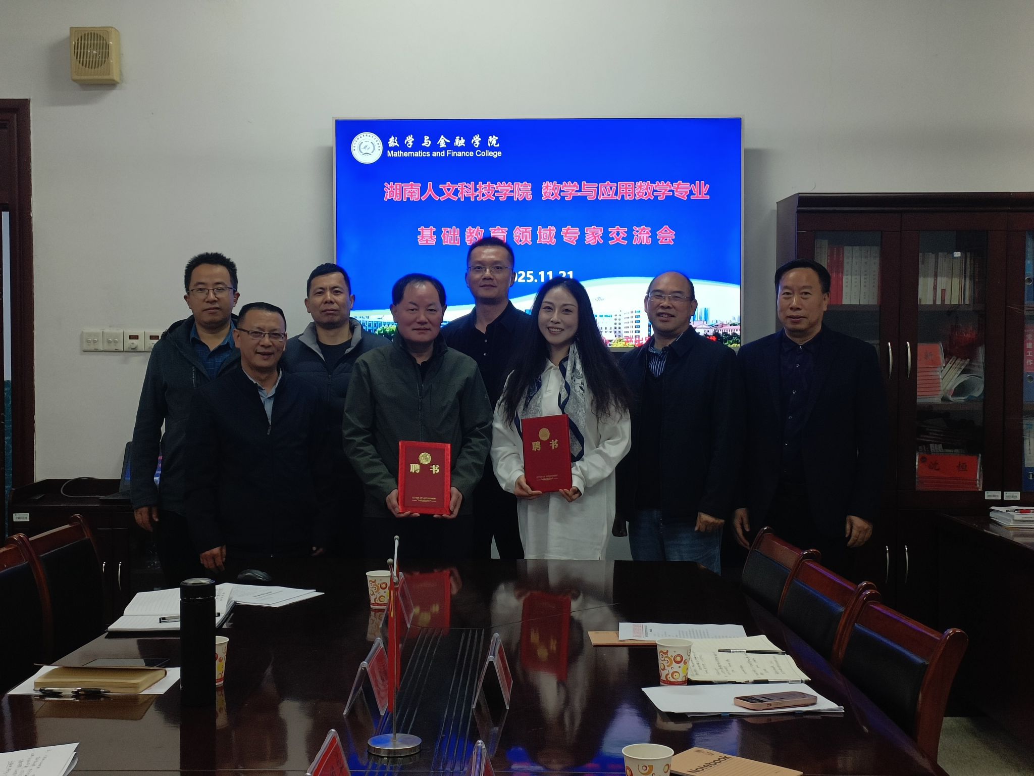 11月21日下午,学院举行数学与应用数学专业基础教育领域专家交流会,娄底市师资培训中心党总支书记邹兆林、市教科所副所长王献忠、市师资培训中心副主任吴芬应邀出席,学院党总支书记陈国华、院长李军成、副院长龙志文及部分教师代表参加交流,会议由副院长罗志军主持。