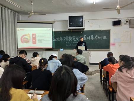 2018年11月5日晚,“2018年下学期党员发展对象培训班”在致远楼418教室顺利开课。本次党员发展对象的培训课程由数学与金融学院党总支部主办,马克思主义学院党总支部、法学院党总支部和文学校党总支部共同参与。