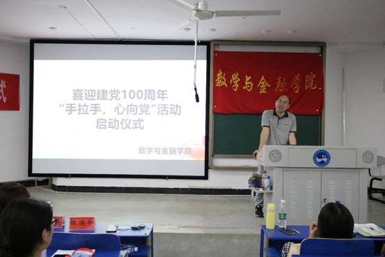 在党史学习深入开展之际,512日晚,数学与金融学院在致远楼420教室举行了“迎党建100周年‘手拉手、心向党’志愿服务活动”启动仪式。学院党总支书记陈国华、副书记刘晔、全体辅导员、学生党员及先进学生干部近160人参会。