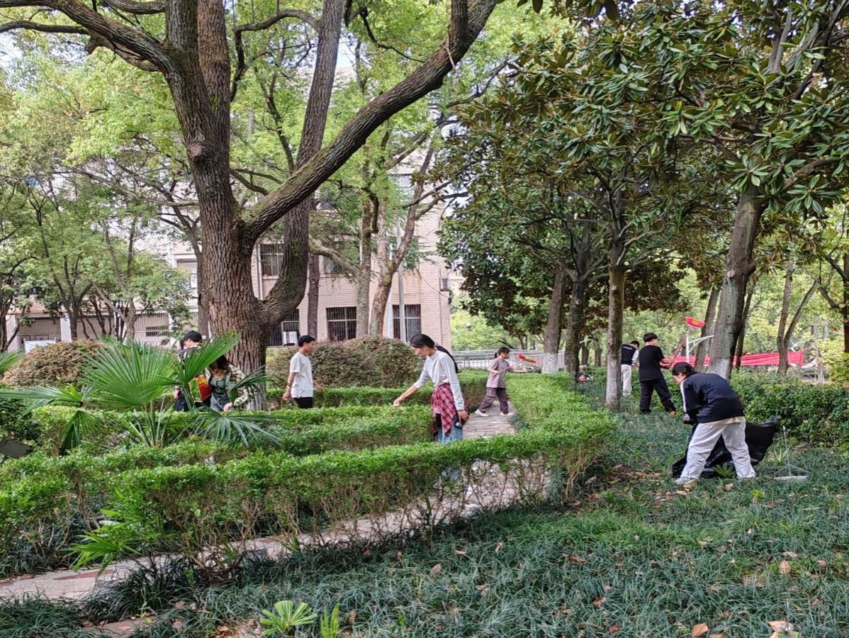 活动现场,阳光洒在同学们脸上,微风轻拂,带来阵阵花香,同学们分工明确,有的清扫街道上的落叶和垃圾,有的拿起垃圾袋负责把垃圾装入其中,还有的仔细检查着花坛,清理着其中的垃圾。大家分工明确,配合默契,不放过任何一个角落。大家齐心协力,用实际行动诠释着对人文的热爱和对生态环境的呵护。