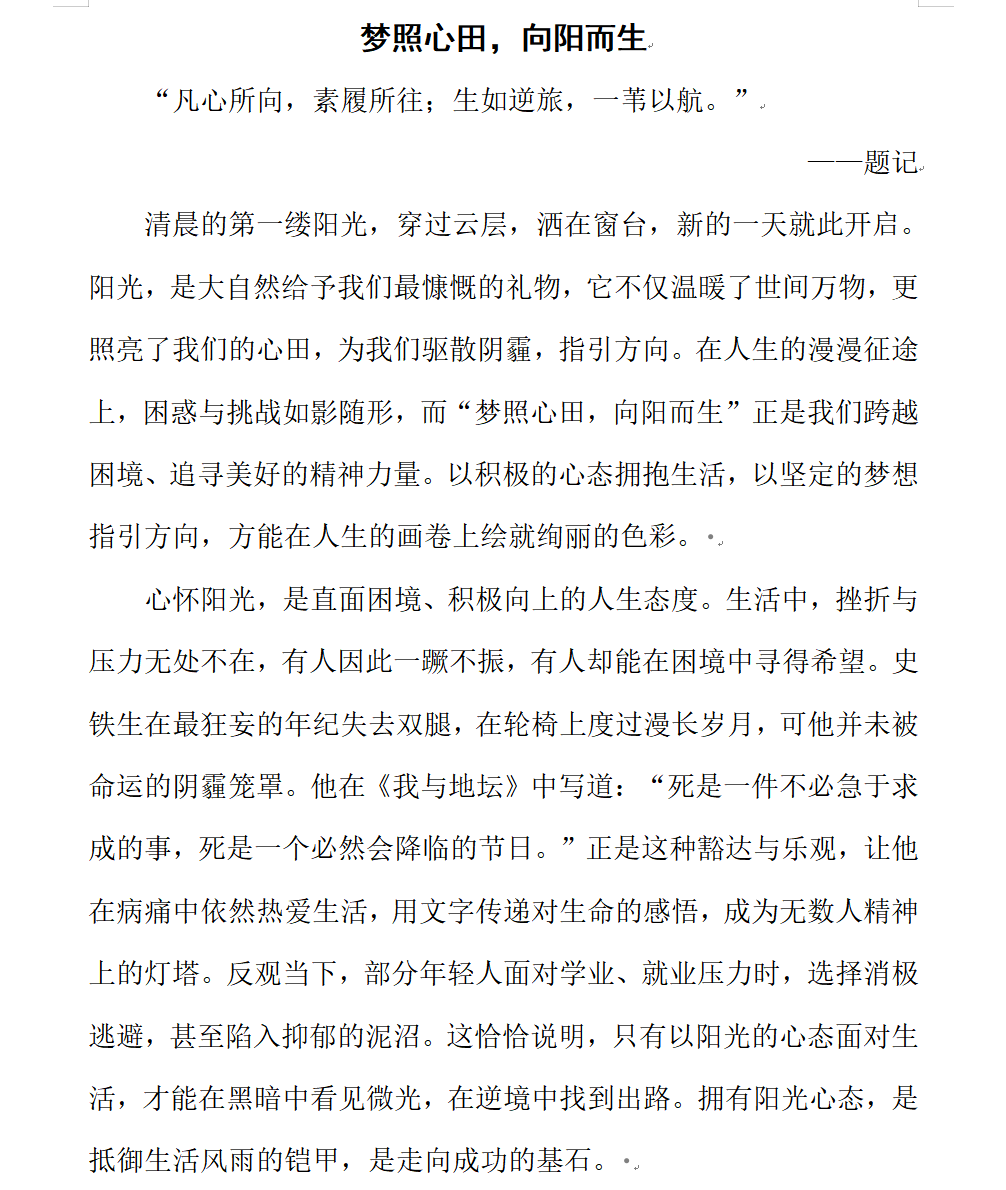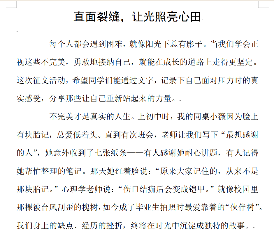 此次征文大赛为学生提供了情感表达与压力释放的平台,营造了关注心理健康的浓厚氛围。通过优秀作品的展示与交流,进一步促进心灵共鸣,推动心理健康教育工作落地见效,助力学生以更积极的心态面对学习与生活。