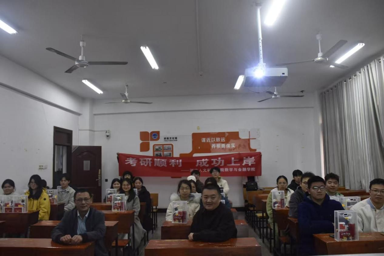 12月17日,数学与金融学院在致远楼614室举行2025届考研誓师大会。学院领导、教师代表与全体考研学子齐聚一堂,在庄严而热烈的氛围中,为最后的冲刺凝聚力量、坚定必胜信心。