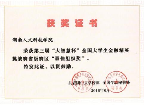 本专业学生在校期间可参加国家、省级、校级各类竞赛20余种,如全国大学生金融精英挑战赛、全国大学生数学建模比赛、全国大学生数学竞赛、“挑战杯”大学生课外学术科技作品竞赛、“互联网+”创新创业大赛、金融知识征文比赛、“金手指”点钞大赛等。近年来,本专业学生在全国大学生金融精英挑战赛中获得国家奖39项,其中国家一等奖3项、国家二等奖12项、国家三等奖24项。