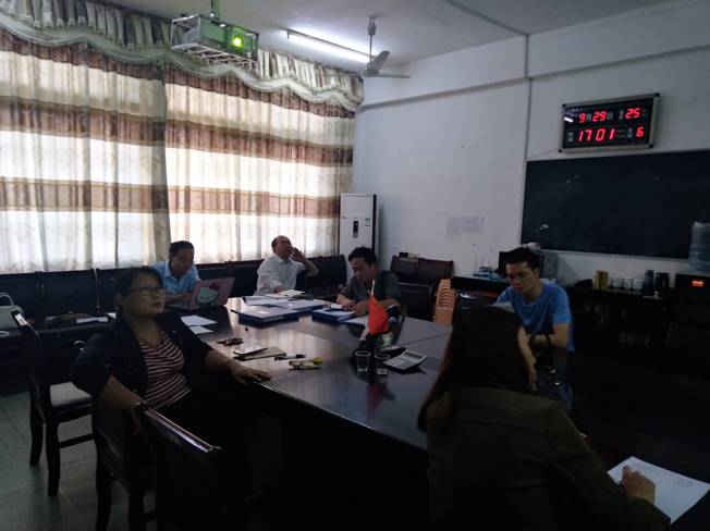 2018年9月29日下午4:30在致远楼413,我院组织召开教研室主任学年考核评审会议,参会人员的评审委员有陈国华院长、李军成、高平、廖小莲及各教研室主任。