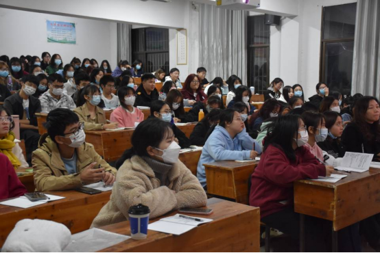 11月14日晚,数学与金融学院特邀文学院党总支书记尹钟宏在学而楼409教室为入党积极分子主讲“中国共产党的宗旨、性质基本路线及党的纲领和组织原则”专题党课。