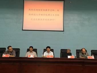2017年6月8日晚7:30~9:30,国家级教学名师、国防科技大学理学院博士生导师吴孟达教授应邀来beat365,在图书馆二会议室为beat365师生带来了题为《感悟数模》的学术报告。报告由数学与金融学院院长陈国华教授主持,副校长周发明教授、教务处处长羊四清教授、数学与金融学院副院长李炳君博士、beat365数学建模教研团队全体成员以及120余名学生聆听了报告。