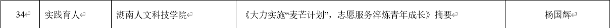 近日,中共湖南省委教育工作委员会公布了湖南省高校“十大”育人示范案例的遴选结果。根据《关于征集“十大”育人示范案例的通知》(湘教工委通〔2020〕14号)要求,前期,厅委委托我省高校思政工作创新发展中心和高校网络思政工作中心,对本次面向全省高校征集的1865篇案例进行遴选、把关、编辑,最终评选出“十大”育人示范案例889篇,其中全文收录418篇、摘要110篇、辑目361篇。据悉,我院副院长杨国辉负责的实践育人案例《大力实施”麦芒计划”,志愿服务淬炼青年成长》被摘要收录,我院游训龙教授负责的课程育人案例《劳动教育在青年马克思主义者培养工程骨干班课程教学中的作用》被辑目收录。