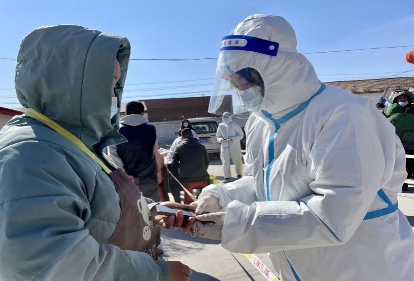 在核酸检测现场为居民录入信息
