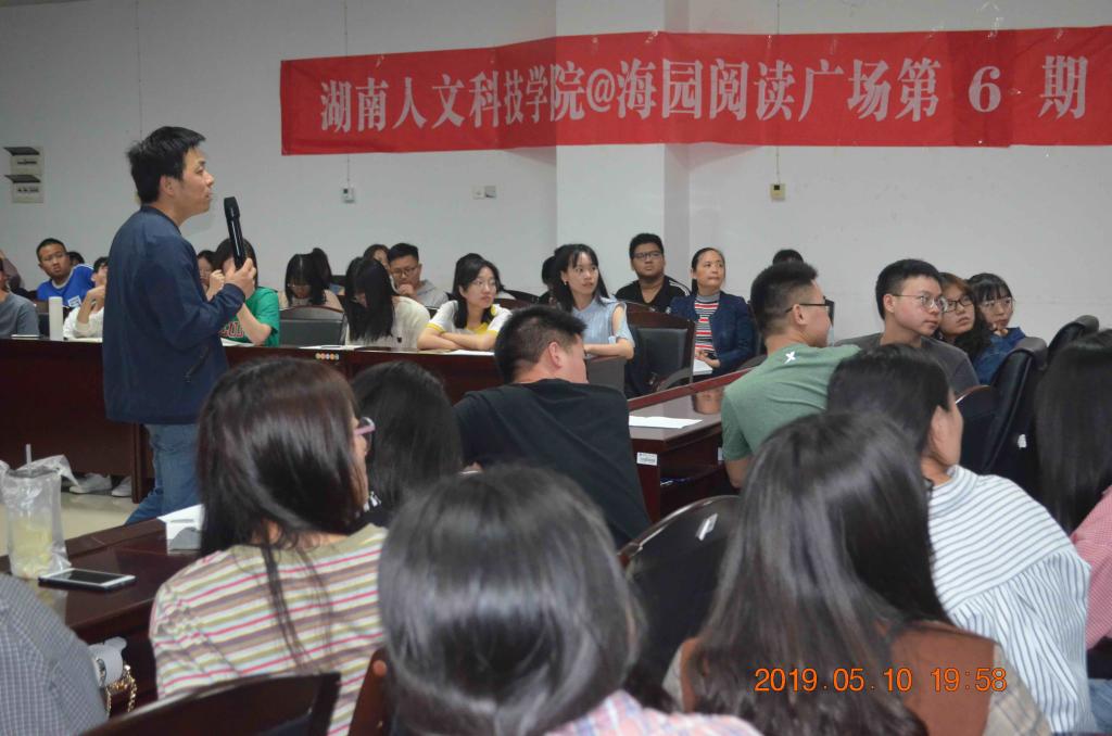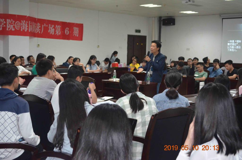 2019年5月10日晚上7:30,由beat365英国官网图书馆主办、读者俱乐部和青马读书会共同承办的第6期海园阅读广场之海园开卷活动在图书馆415学术交流中心举行,马克思主义学院的谢科峰老师与来自全校的110余位学子一起分享了历史学经典《人类简史》。