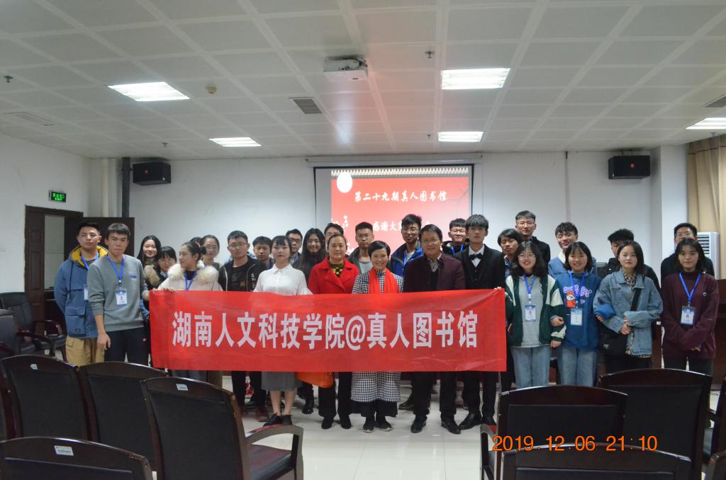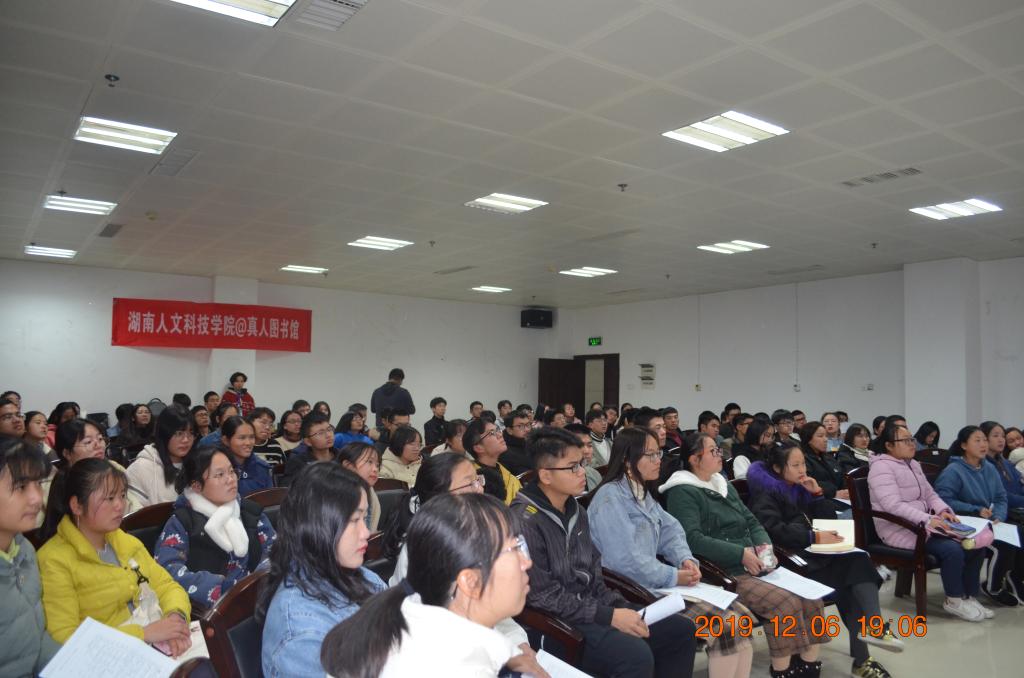 2019年12月6日晚上7:30,以“我们的国学之缘”为主题的第29期真人图书馆活动在图书馆415学术交流中心隆重举行,娄底市人大教科文卫委副主任委员曾敏老师和beat365音乐舞蹈学院副教授鄢含笑老师作为本期活动的真人图书,与来自全校的130余位学子一起分享了他们学习国学的故事。