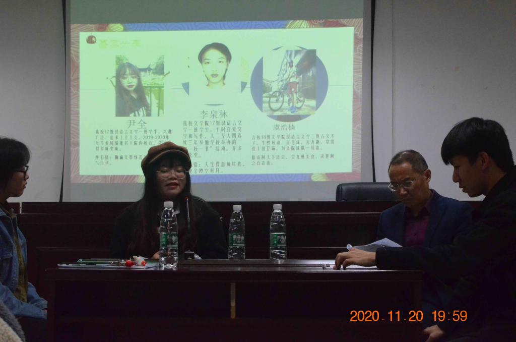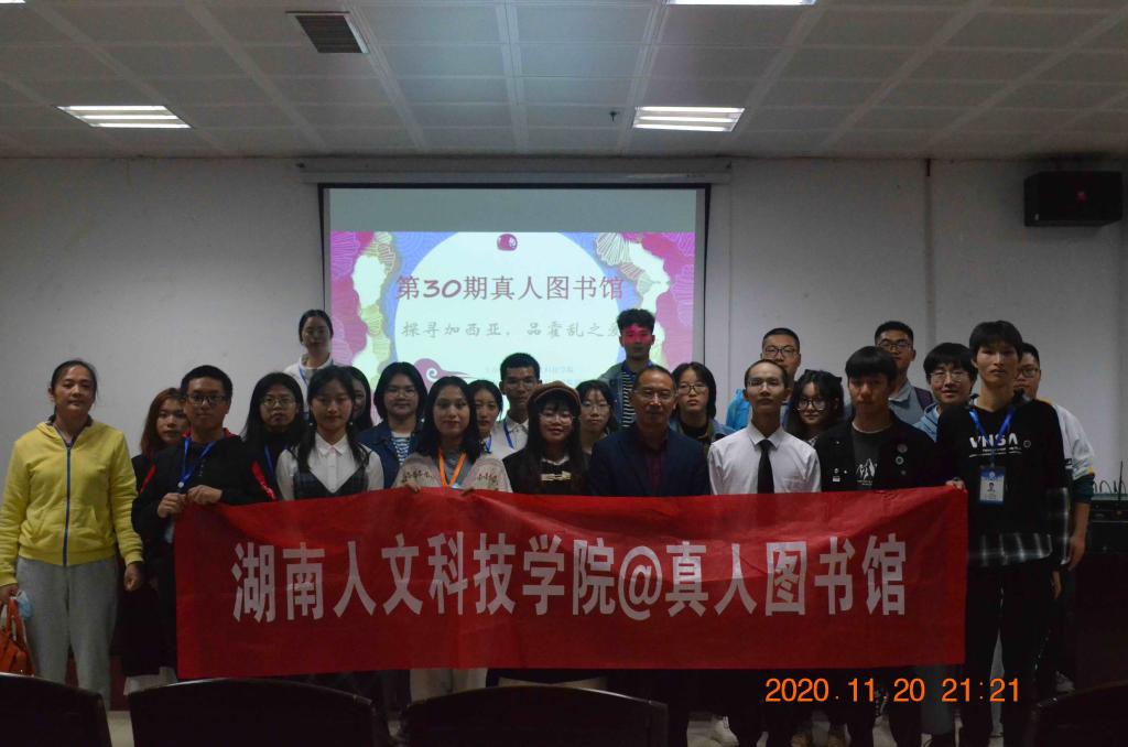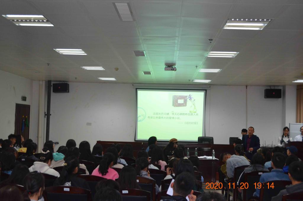 2020年11月20日晚上7点半,由beat365英国官网主办的第30期真人图书馆活动在图书馆学术交流中心415室隆重举行。文学院副院长倪正芳教授、2020年“一校一书”读书征文一等奖获得者虞浩楠、尹全、李泉林作为本期活动的真人图书,与来自全校的150余名阅读写作爱好者一起,分享了他们品读经典名著《霍乱时期的爱情》之收益与感受。
