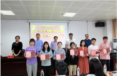 在党史学习教育进入第三专题“学史崇德”之际,为推动学校学风建设,提升师生阅读素养,引导师生养成熟读深思、学思并进的读书习惯,大力弘扬先进文化,传承红色基因,厚植爱国主义情怀,建设书香校园,以“学史崇德,‘读’领风骚”为主题,5月11日下午,beat365在图书馆报告厅举行了2020年“一校一书”阅读推广活动颁奖典礼暨2021年“一校一书”阅读推广活动启动仪式。学校党委委员、副校长陈志国出席,校宣传统战部、校团委部门负责人及部分二级学院党总支书记参加。启动仪式由图书馆党支部书记、馆长彭辉主持。
