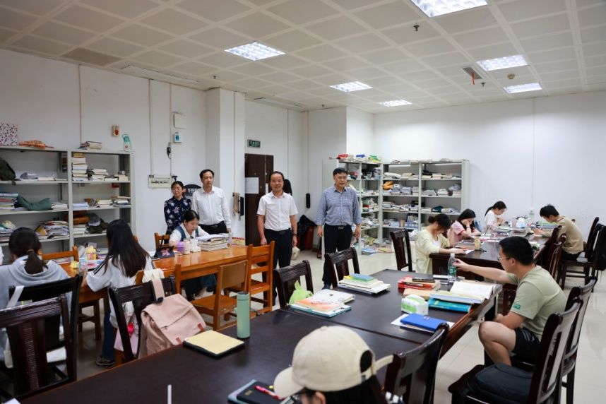 最后,盛明科指出,图书馆是学校的文献信息资源中心,是传承、传播、管理知识的重要阵地。一是要充分发挥在学校人才培养、科学研究、社会服务和文化传承创新中的作用,不断拓展和深化服务,注重阅读空间的营造和阅读体验活动的开展。二是要加强职工队伍建设,重视人员的梯队建设,优化职工队伍结构,进一步增强服务意识,继续改善学习条件,为师生提供更多的便利,更舒适的服务。三是要结合未来发展方向和自身实际情况进一步做好规划,科学谋划发展,更好地为教学和科研服务,助力学校高质量发展。