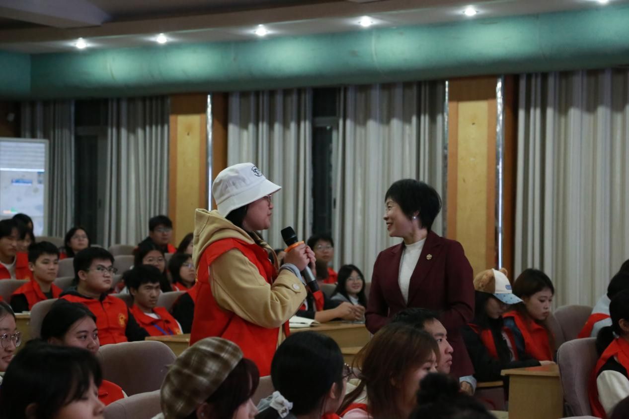 在互动环节中,梁红波老师通过生动的案例分析和情景模拟,引导志愿者们沉浸式体验服务过程中可能遇到的各类情境,并启发大家主动思考最优应对方式。志愿者们认真聆听、踊跃参与,充分展现了青年学子积极向上、乐于奉献的精神风貌。