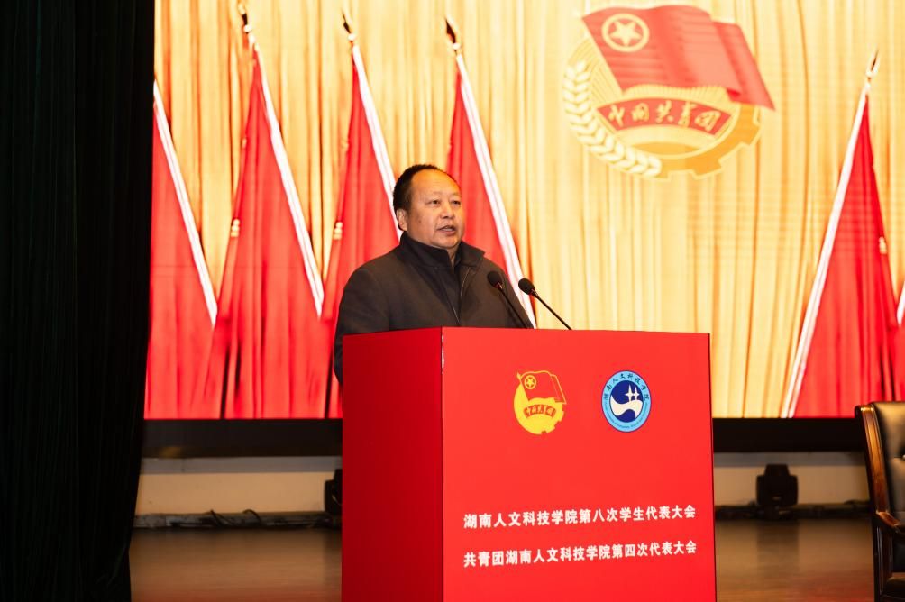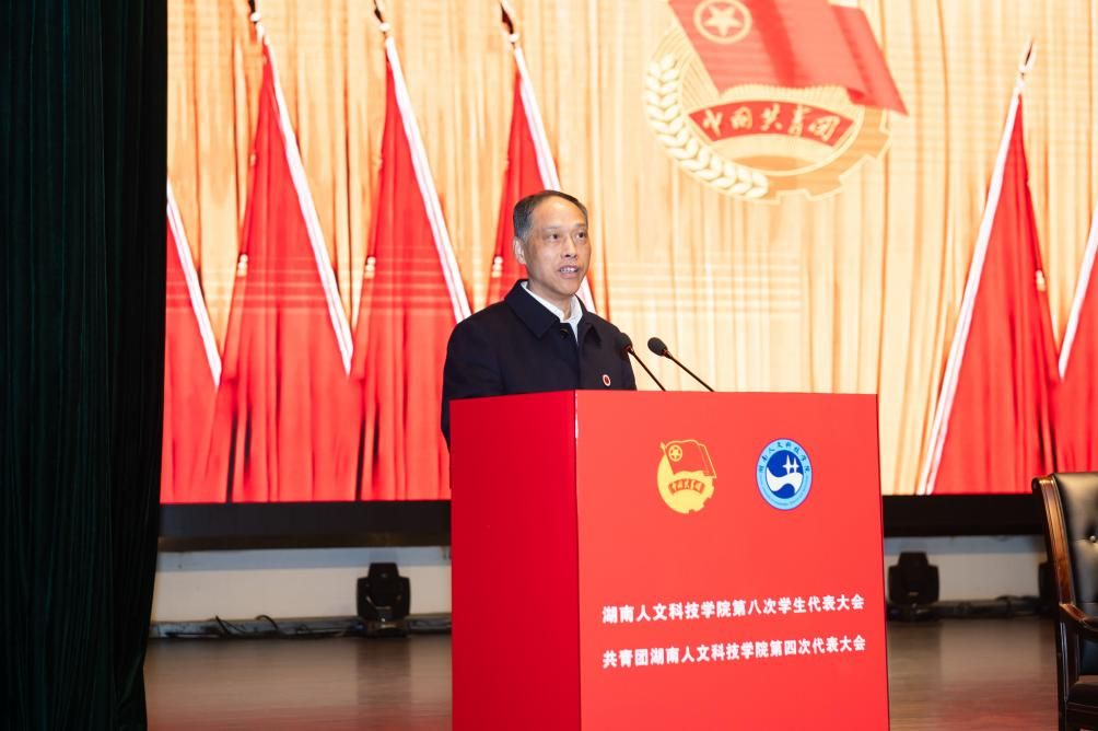 12月7日,共青团beat365英国官网第四次代表大会暨beat365英国官网第八次学生代表大会在逸夫楼多功能厅举行。共青团湖南省委副书记刘训,共青团娄底市委书记罗建湘,共青团娄底市委副书记康跃辉,团省委学校部相关负责同志以及湘潭大学、怀化学院、吉首大学、娄底职业技术学院、张家界学院等兄弟高校团委负责同志受邀出席会议。校党委书记刘铁铭,校党委委员、副校长谭峰亮出席会议。学校相关职能部门负责人和各学院党总支书记、副书记、团总支书记,辅导员代表,来自全校的195名团员代表、215名学生代表、38名特邀嘉宾、26名列席代表参加会议。
