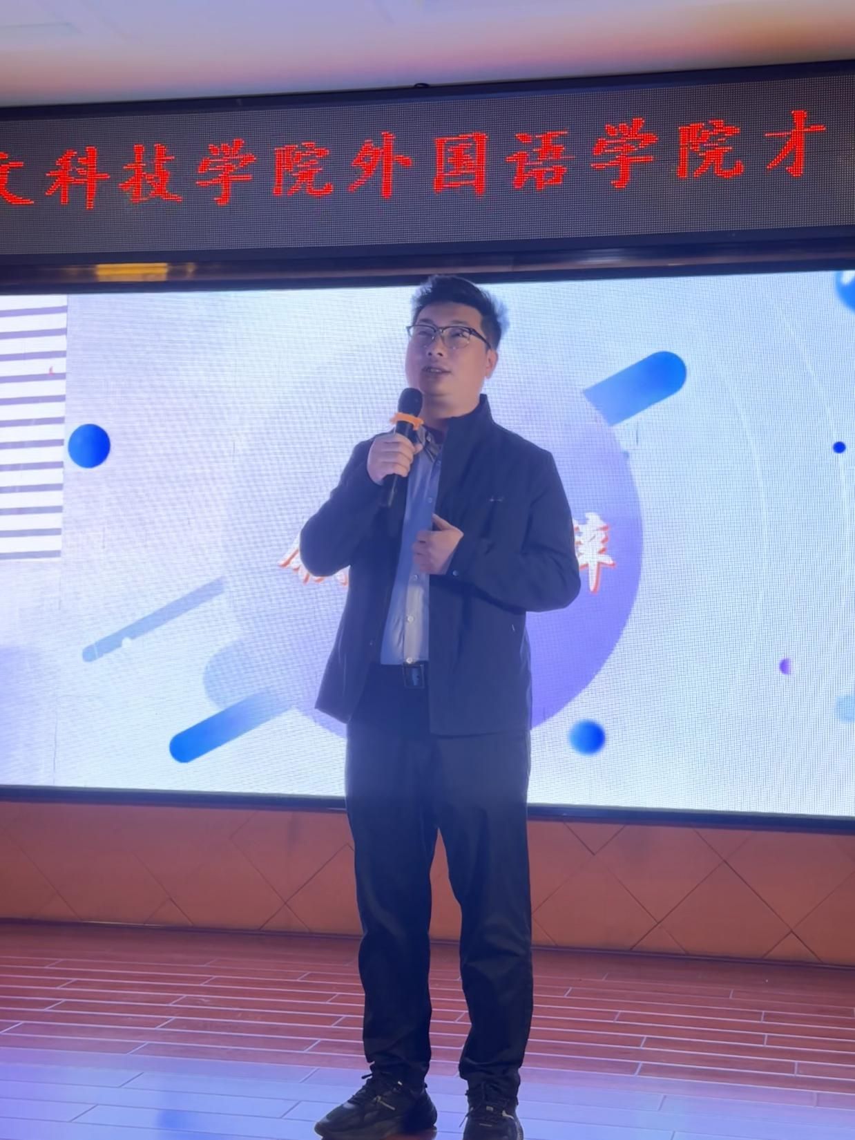 外国语学院党总支书记李霞、校团委挂职副书记何松、外国语学院党总支副书记罗嗣安及学工办各位老师出席本次活动并担任评委。比赛中选手们各展所长,角逐激烈,现场氛围持续高涨。经过评委们的综合打分,最终肖慧琳、李金玲同学获得一等奖,徐旸、颜紫麒同学获得二等奖,魏子玉、罗家威等4名同学获得三等奖,唐浩然、李益婷等5名同学获得优秀奖,颜紫麒同学获得最佳人气奖。