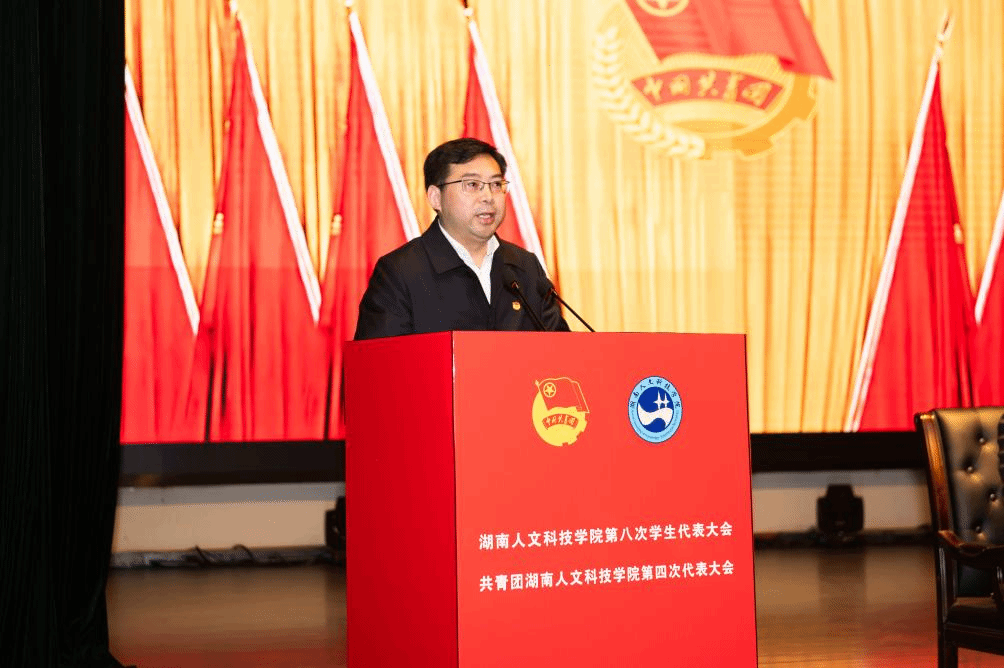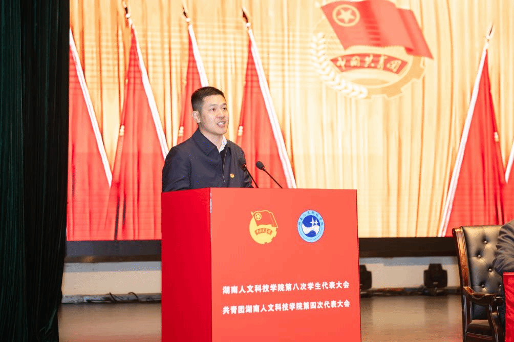 12月7日,共青团beat365英国官网第四次代表大会暨beat365英国官网第八次学生代表大会在逸夫楼多功能厅举行。共青团湖南省委副书记刘训,共青团娄底市委书记罗建湘,共青团娄底市委副书记康跃辉,团省委学校部相关负责同志以及湘潭大学、怀化学院、吉首大学、娄底职业技术学院、张家界学院等兄弟高校团委负责同志受邀出席会议。校党委书记刘铁铭,校党委委员、副校长谭峰亮出席会议。学校相关职能部门负责人和各学院党总支书记、副书记、团总支书记,辅导员代表,来自全校的195名团员代表、215名学生代表、38名特邀嘉宾、26名列席代表参加会议。
