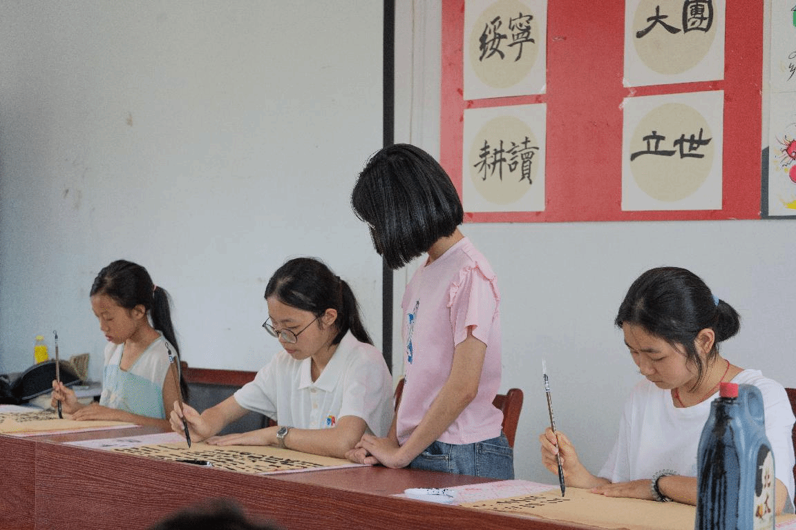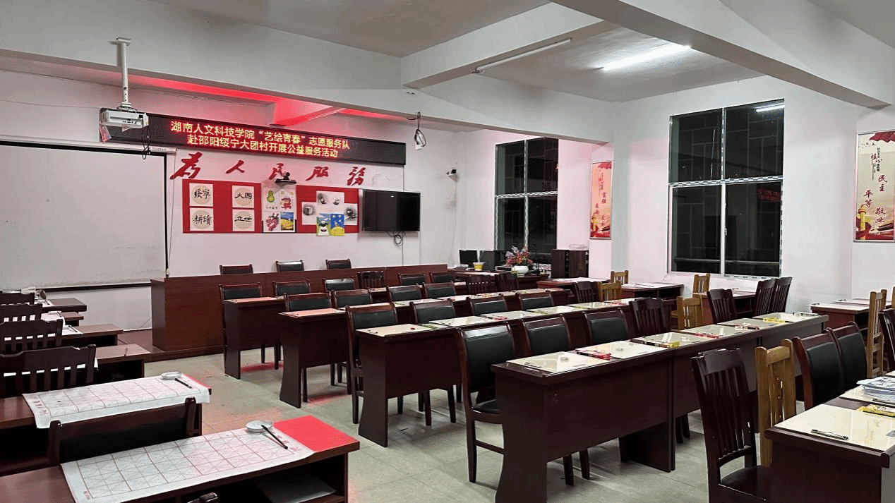 为了给孩子们营造一个良好的学习环境,队员们精心布置教室。他们用五彩的画笔在墙壁上绘制出充满童趣的图案,将一幅幅优秀的书画作品挂满教室的墙壁,并为每一个孩子配备了一套绘画和书法工具。经过一番努力,原本简陋的教室焕然一新,充满了艺术的气息。