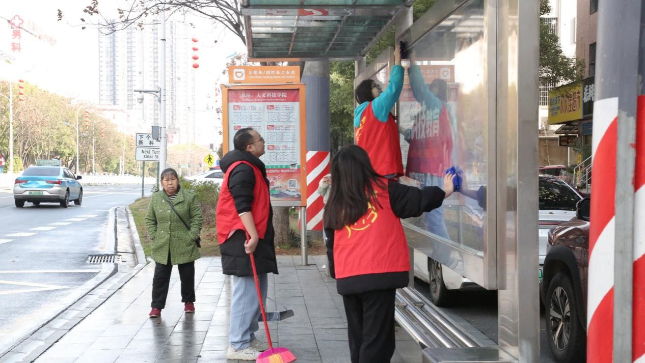 清晨,迎着朝阳一群“红马甲”相聚在校图书馆前坪,来自14个二级学院的60余名青年志愿者准备体验“雷锋”的一天。他们拿上清洁工具,分组行动来到氐星路、新星南路和学院路共5个公交站台擦亮了这座城市的“窗口”。现场,同学们分工协作,认真擦拭公交站台的玻璃、座椅,清扫周边地面垃圾,仔细清理卫生死角。他们用实际行动传承和践行雷锋精神,也以青春的活力和饱满的热情,引来无数路人驻足夸赞,这群印着beat365英国官网名片的“红马甲”成为了今天娄底市区的一道亮丽风景线。