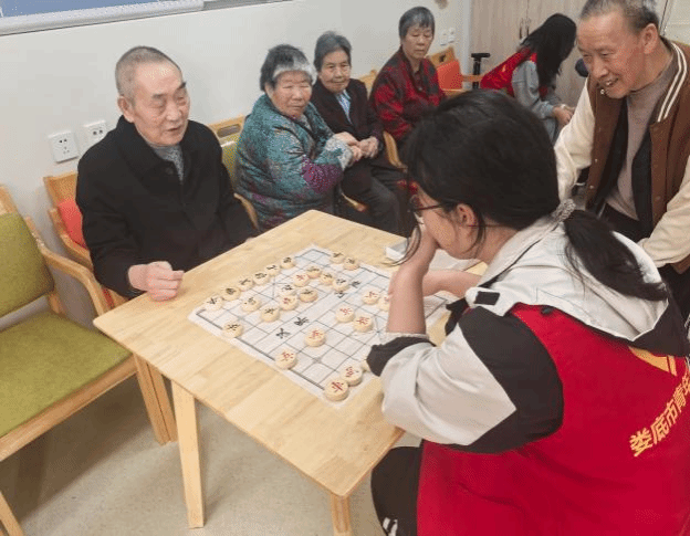 一踏入养老院,志愿者们便忙碌起来。他们分组行动,有的志愿者陪老人聊天,倾听他们讲述过去的故事,品味老一辈人的精彩人生;有的志愿者为老人表演节目,经典老歌、趣味折纸等轮番上演,赢得了老人们的阵阵掌声和欢声笑语;还有的志愿者与老人在棋盘上对弈,激烈的对局过后,许下了"下次来技术一定更加精进"的诺言。