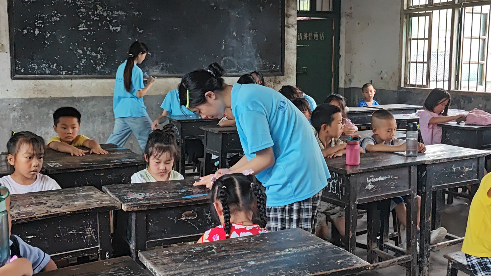 (志愿者给小朋友播放儿歌)