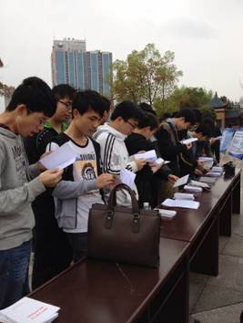 2014年3月31日上午8点,我系组织学生在娄星广场参加了娄底市人防工程建设宣传活动。本次活动由娄底市人防办主办,主要是宣传湖南省人民防空工程建设与维护管理规定(省政府第270号令)。同学们认真翻阅宣传手册、仔细阅读宣传展板,贺靖、李慧同学现场接受了娄底电视台的采访。