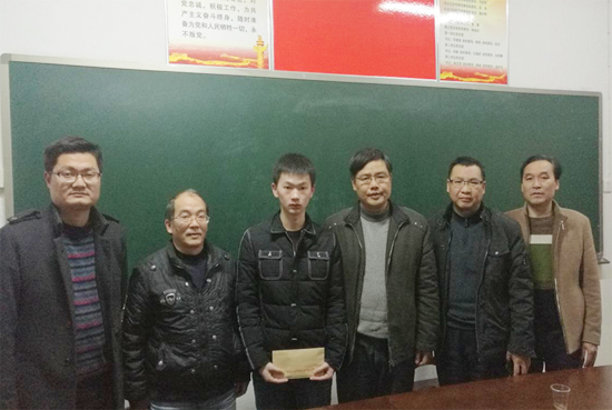 能机学院15级自动化2班的黄坚同学,其父亲2014年查出直肠癌,治病花完了家里不多的积蓄还欠下了不少的外债,最后因病情恶化于今年逝世,他家里还有年迈多病的爷爷奶奶和一个读初中的弟弟,家里的重担一下全压在黄坚同学的母亲身上,他家是岳阳平江的一个山村,经济不太发达,没有好的经济来源。而黄坚在校一直表现很好,担任班上团支书,学习勤奋,有志向,工作认真负责,是一个诚实朴素自立自强的好学生。国资处彭辉处长在得知这个情况后,立即组织本部门的人员捐资助学,于1228日下午带领鄢凤鸣副处长等一行五人来到能机学院为黄坚同学送来爱心善款。彭辉处长勉励黄坚同学要有理想,有自信,好好学习,发奋图强,并与黄坚互留了电话号码,表示今后根据其表现情况将继续对他进行资助,希望他有困难及时联系。黄坚同学非常感激彭处长一行的帮助和关心,表示一定不辜负领导老师的期望,学好本领,回馈社会。国资处是学校“三联系”工作对接能机学院的机关部门,去年资助了能机院的一位优秀贫困学子,他们以实际行动诠释了“人才至上,仁爱满园”的校风。(肖毅供稿)