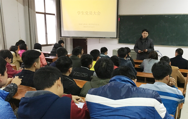 3月22日下午,能源与机电工程学院党总支在学而楼309教室召开了学生党员大会,学院党总支书记谭甲凡在大会上讲话,学生党支部书记参会。