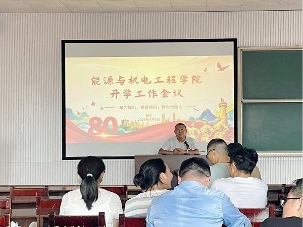 9月5日下午,能源与机电工程学院在同德楼601室召开2025年下学期开学工作会议。全体教职员工参会,会议由院长胡东主持,旨在明确新学期工作重点,统筹推进教学、科研等学院发展各项任务落地。