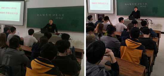 2019年3月27日下午,能源与机电工程学院在学而楼209召开了考研动员大会,能源与机电工程学院党总支书记彭辉,副书记伍铁斌,自动化教研室主任兼考研班主任岳舟及2016级准备考研的190多名同学参加了此次会议。大会由分管学生考研工作的伍铁斌副书记主持。