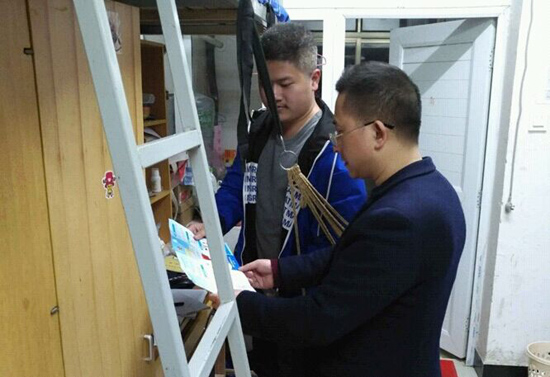 3月26日晚20点30分,为进一步落实3月22号由学工处主办的审核评估工作布置会上的重要精神, 由党总支书记彭辉,副书记伍铁斌带队,所有辅导员、班主任老师以及学生会干部参与,对我院学生宿舍进行了全面大巡查。在检查中,彭书记,伍书记和各位班主任老师对校外租房,使用大功率器件, 征兵, 文明习惯养成、文明寝室建设等工作做了具体要求,详细了解学生寝室生活和学习情况,并叮嘱同学们要整理好寝室内务。(图、文 肖毅)