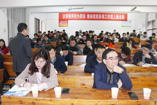 会上,陈勇处长首先就审核评估的知识要点和审核评估的相关文件做了清晰的解读。然后,能机院副院长刘海力作了题为《深度推进审核评估工作方案》的报告,报告从目标考核与奖惩规定、任务清单及月度工作安排、课堂教学、考试试卷、毕业设计等五个方面作了部署和安排。最后副校长蒋建初对我院审核评估工作作了精细指导和重要指示,他指出要正确理解评建工作的20字方针,真正做到以评促建,以评促改,以评促管,评建结合,重在建设。要广泛做好评估的宣传和发动工作,要进一步细化能机院的迎评工作方案,同时希望能机院在各项工作中取得优异成绩,为学校的建设和发展做出更大的贡献。