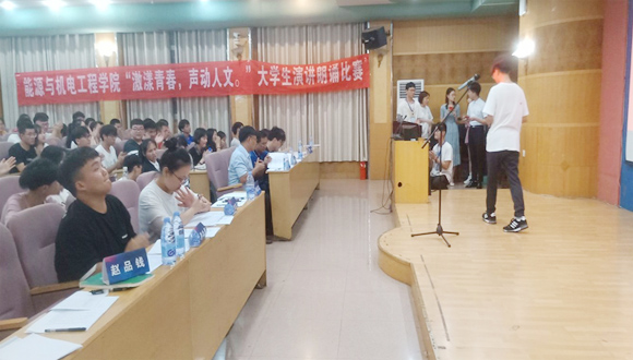 6月20日晚,能源与机电工程学院“激漾青春,声动人文”大学生演讲与朗诵比赛决赛在养根楼报告厅隆重举行。此次活动为能机学院“工科学生人文素质培养系列活动”之一,由能机学院党总支主办,能机学院学生会承办。党总支书记彭辉、副书记伍铁斌、教师代表周浏阳、聂时君、曹锋、全体辅导员及学生会主要干部出席比赛并担任评委,近300名学生代表参加此次活动。