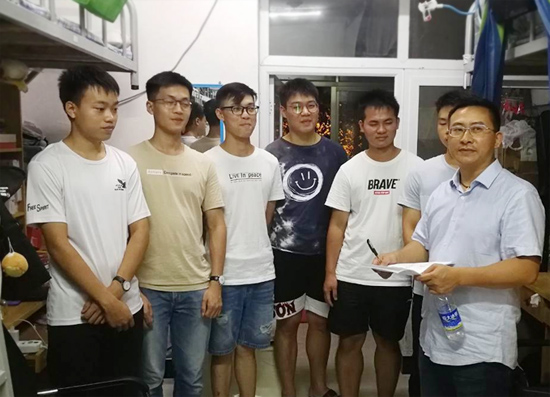 为全面了解学生到校住宿情况,落实平安校园建设,营造良好的学习生活环境,帮助学生答疑解惑,2019年9月1日晚,学院党总支书记彭辉、副书记伍铁斌带队,全体辅导员、班主任老师以及学生会干部参与,对我院学生宿舍进行了巡查和慰问。