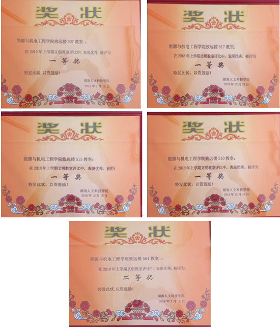 2019年10月12日,学校对文明教室评比进行了表彰,能源与机电工程学院致远楼507、致远楼510、致远楼515、致远楼517教室在文明教室评比中表现优秀,荣获一等奖;致远楼504教室荣获二等奖。