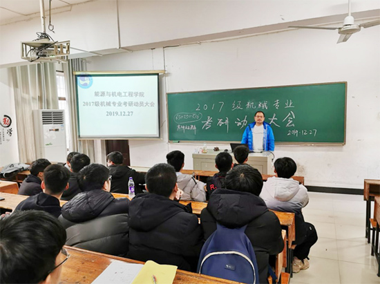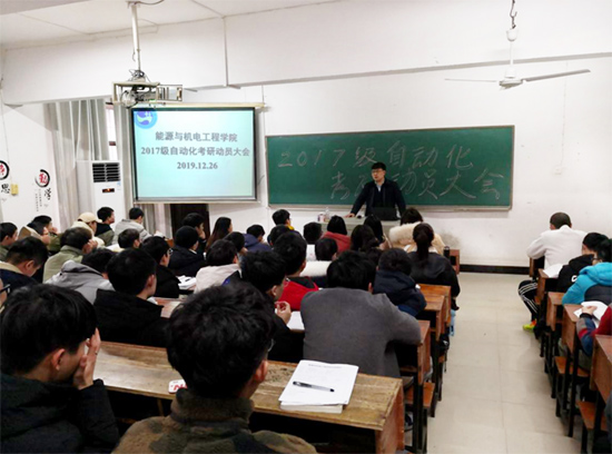 2019年12月26日和27日,能源与机电工程学院在学而楼209分专业召开了四场考研动员大会。党总支书记彭辉、副书记伍铁斌、各教研室主任、全体辅导员及各专业有意向考研的200余名同学参加了会议。大会由分管考研工作的副书记伍铁斌主持。