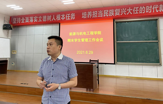为进一步加强学生管理,增强学生安全防范意识,保障学生生命安全和身体健康,确保期末和暑假期间学生教育管理工作安全稳定。6月29日上午,能源与机电工程学院在同德楼601室召开了期末学生管理工作会议。学院党总支书记谢常清、党总支副书记石海、副院长伍铁斌以及全体辅导员、班主任参加了会议。