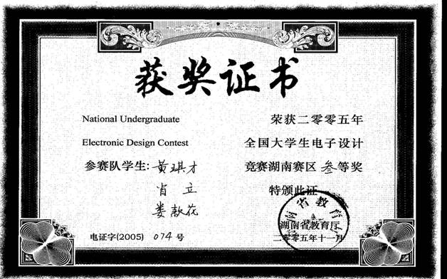 通信与控制工程系学生2005年、2007年参加全国大学生电子设计竞赛获奖情况