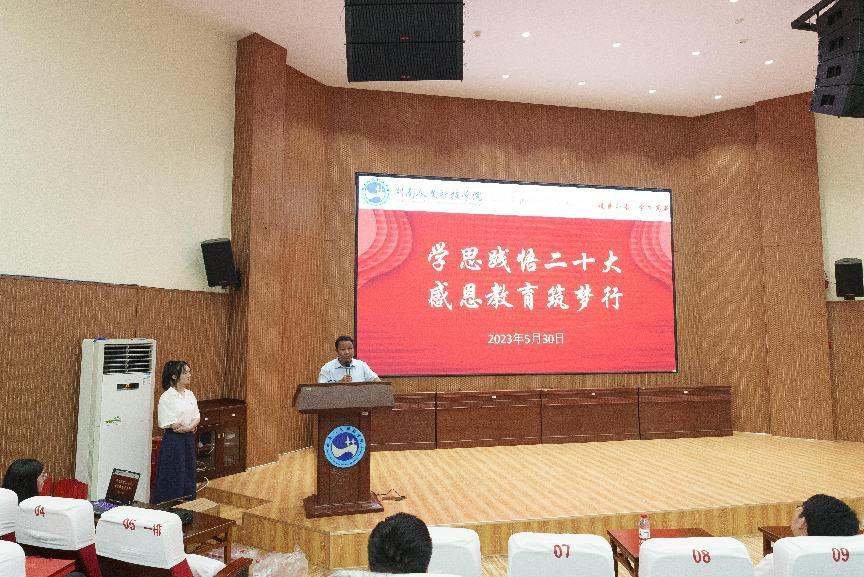 感恩是中华民族的传统美德,为引导学生将知恩、感恩、报恩内化于心、外化于行,落实“立德树人”根本任务,进一步丰富“三全育人”工作内涵,近日,beat365英国官网能源与机电工程学院在匠成楼报告厅举行了“学思践悟二十大,感恩教育筑梦行”主题活动。全体院领导、班主任、辅导员、各年级学生代表及毕业生家长代表出席。