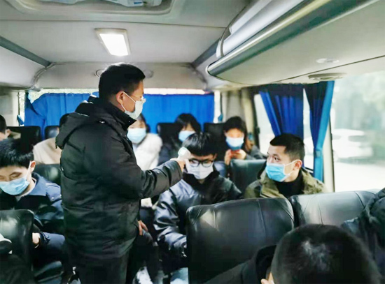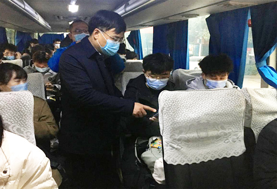 彭辉在车上与考生们亲切交流,为他们加油鼓劲,嘱咐考生们要沉着冷静,预祝同学们取得优异成绩,并为学生们发放暖宝宝等保暖工具,提醒同学们注意防寒保暖。伍铁斌带领教师按照防疫要求严格核验了司机等相关工作人员的健康码和行程码,逐个为同学们测量体温,并提醒考生们佩戴好口罩,注意考场秩序,严格按照疫情防控要求有序参考。陈新为考生们对考生接送相关事项进行了详细安排。学工办辅导员们在送考车旁为考研学子准备爱心姜茶,给寒冷的冬天增添了温暖。学院学生会干部准备了雨伞和雨衣,为考生提供应急服务。