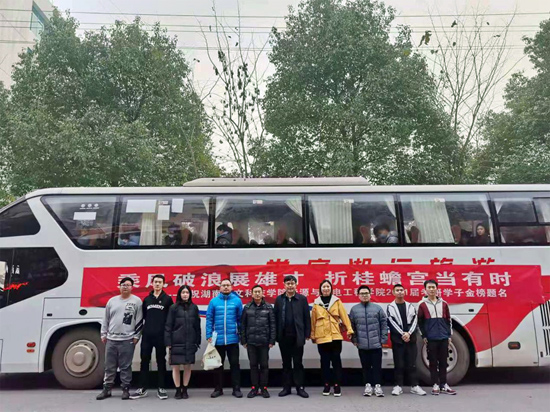 为了给广大考生提供更好的考研服务,12月26日和27日,2021年全国硕士研究生入学考试期间,能源与机电工程学院为118名考生提供了两辆送考大巴车,并在车上配备热开水、姜茶、暖宝宝和食品。学院党总支书记彭辉、副书记伍铁斌、考研班主任陈新、全体辅导员和学生会主要干部都来到现场为考生加油鼓劲。